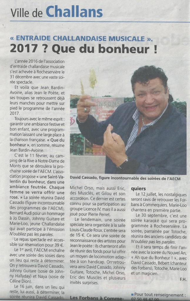 Retrouvez ici tous les articles de presse traitant de l’Association d’Entraide Challandaise Musicale, des artistes et de nos événements